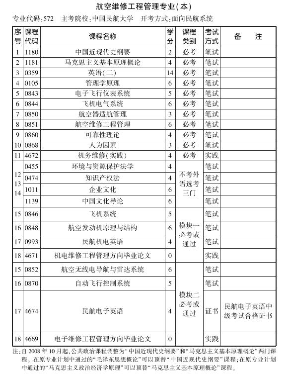 天津2019年10月自考航空維修工程管理專業(yè)本科考試計(jì)劃